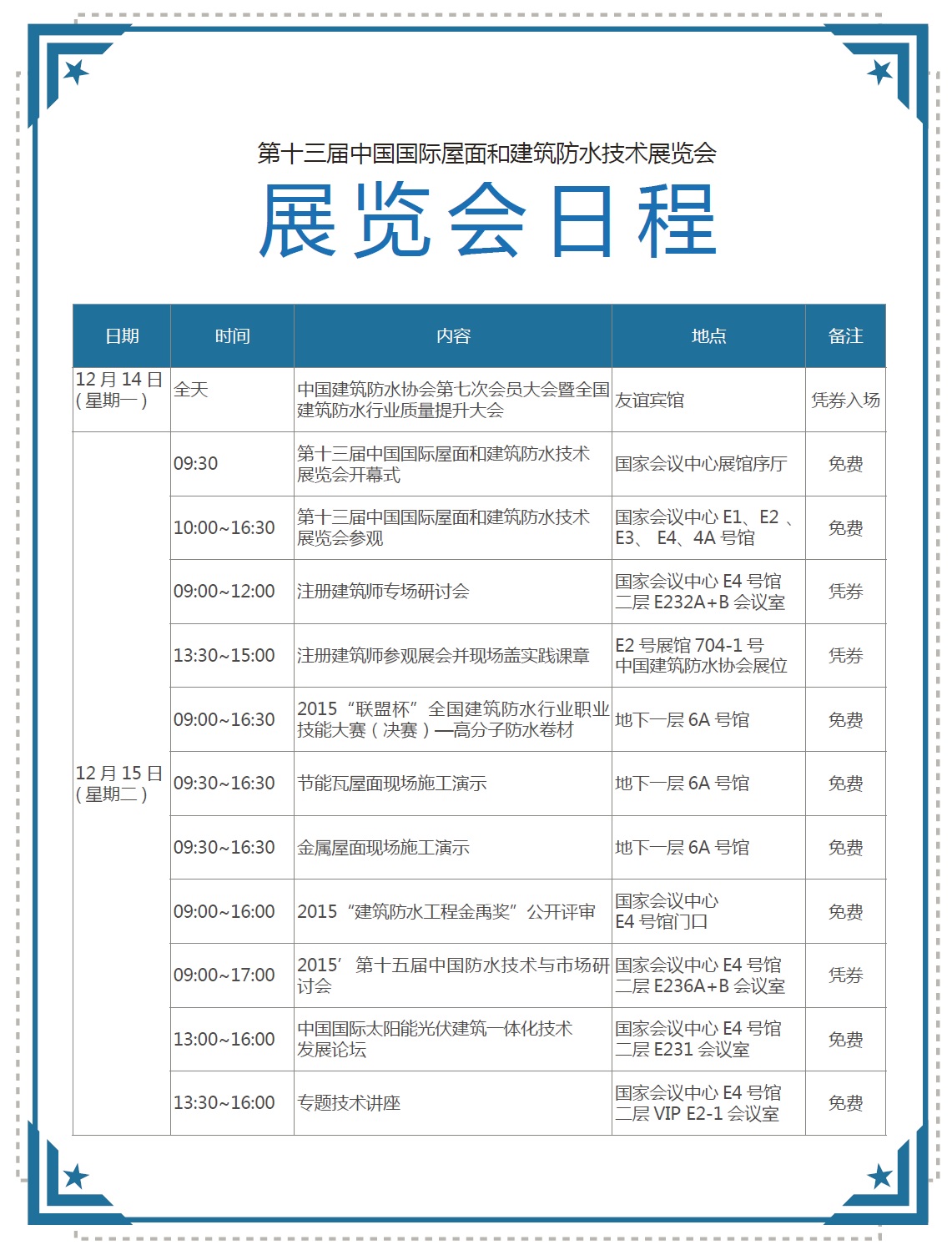 第十三屆中國國際屋面和建筑防水技術(shù)展覽會日程