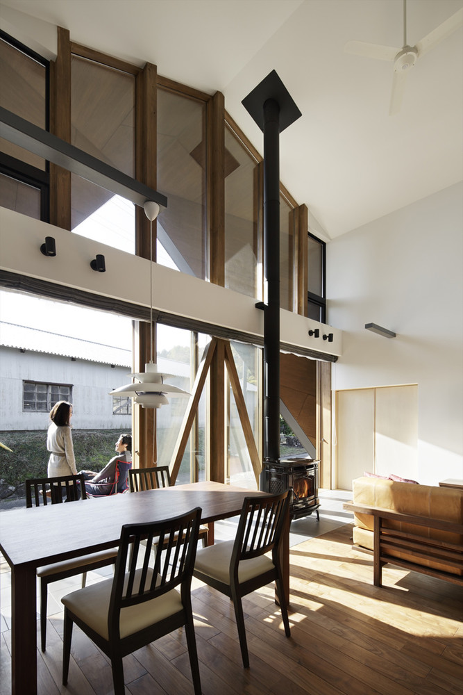 客廳和飯廳是住宅的中心,其他房間(廚房、日式起居室、臥室、浴室等)圍繞著它布局設(shè)計(jì)。連接客廳的半戶外空間采用了木制的天花板,這個(gè)空間也將作為村民集會(huì)的社交場(chǎng)所。