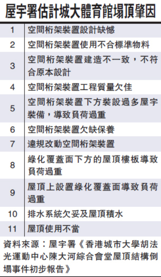 >賽特新聞>行業(yè)新聞> 屋宇署公布城大運(yùn)動(dòng)中心樓板厚度不符圖則或致倒塌
