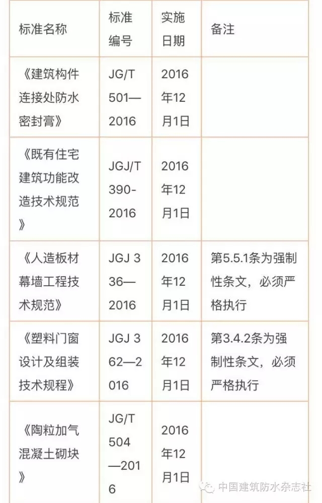 住建部相關(guān)公告指出,從12月1日起,《建筑構(gòu)件連接處防水密封膏》等一大波相關(guān)建設(shè)標(biāo)準(zhǔn)正式實(shí)施。
