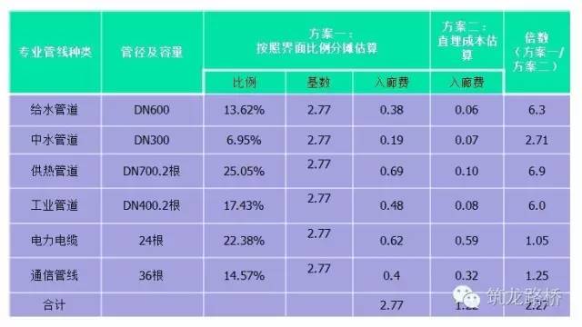 空間比列分攤與直埋成本法入廊費用對比(青島):