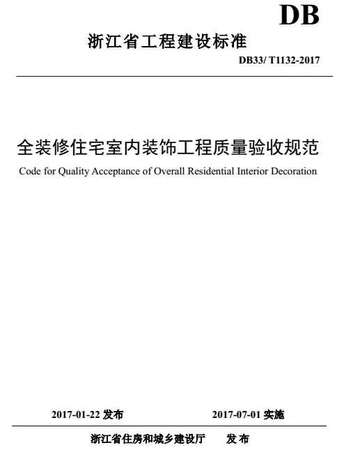 日前,浙江省住房和城鄉(xiāng)建設廳發(fā)布通知:由浙江省建筑裝飾行業(yè)協(xié)會等單位主編的浙江省工程建設標準《全裝修住宅室內(nèi)裝飾工程質(zhì)量驗收規(guī)范》已正式通過審查、公示,批準為全省工程建設標準,自2017年7月1日起施行。