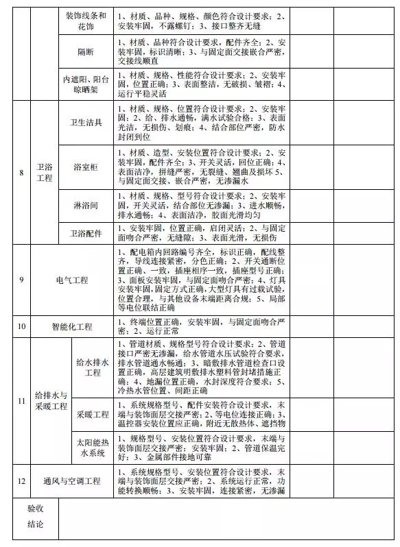 《規(guī)范》附件共103頁,對全裝修如防水、門窗、吊頂、輕質(zhì)隔墻、墻飾面工程、樓地面飾面工程、細部工程、廚房工程、衛(wèi)浴工程、電氣工程、智能化工程、給水排水與采暖工程、通風與空調(diào)工程、室內(nèi)環(huán)境污染控制等十三大類進行了各方面的詳盡闡述。