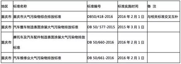 重慶市地方標(biāo)準的制定,有比較明顯的地方特點,即針對汽車行業(yè)發(fā)布了3個行業(yè)標(biāo)準,包括汽車整車制造、摩托車及汽車配件制造、汽車維修等。