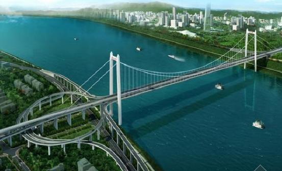 幾江長江大橋,是江津城區(qū)繼江津長江公路大橋、外環(huán)江津長江大橋、鼎山長江大橋之后的第4座跨江大橋??偼顿Y20.3億元,全長1897米,主跨600米雙索面懸索橋,橋?qū)?3米,雙向6車道。該橋南起幾江街道濱江路東門口,北至濱江新城滸溪口,在北岸連通已有的南北大道、九江大道、西江大道和繞城高速,與西彭、雙福、珞璜、大學城無縫對接。