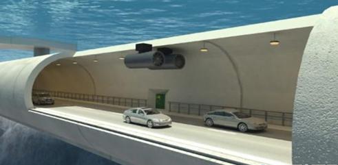 道,預(yù)計將于2035年完工。 這個“漂浮”海底隧道實際上由一至兩條管道組合起來,由浮橋狀的結(jié)構(gòu)支撐,距離水面大約100英尺(約30.5米)。