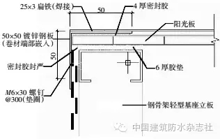 輕型屋面板與女兒墻、鋼天溝、采光天窗、風(fēng)機支座等屋面凸起物交接位置,必須按照屋面規(guī)范要求設(shè)置防水加強層。