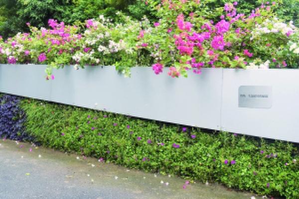 種有各種各樣花草的生態(tài)植被磚綠墻。