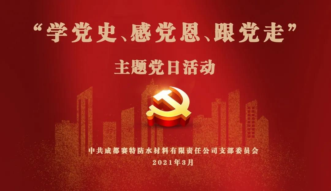 2021年是中國(guó)共產(chǎn)黨建黨100周年,在黨的百年華誕來臨之際,成都賽特防水材料有限責(zé)任公司黨支部開展了“學(xué)黨史、感黨恩、跟黨走”主題黨日活動(dòng)。