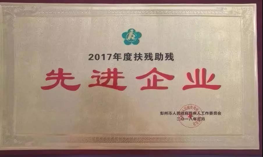 榮獲“2017年度扶殘助殘先進(jìn)企業(yè)”稱號